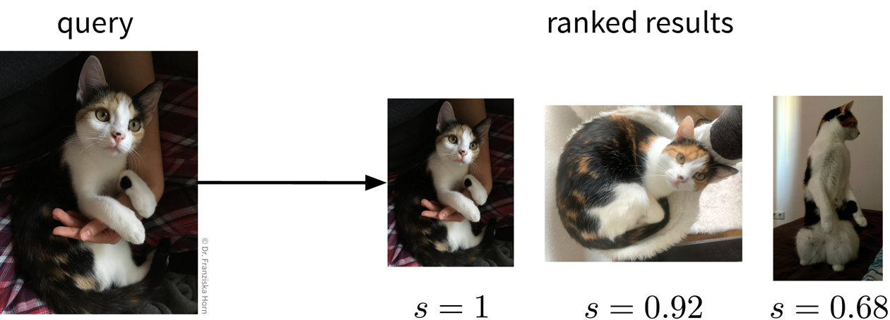 from sklearn.neighbors import NearestNeighborsBut of course, the success of this approach is again highly dependent on being able to compute meaningful similarities between the data points. For text datasets, information retrieval often works quite well by using simple TF-IDF feature vectors together with a cosine similarity, however, for images, for example, out-of-the-box similarity measures that operate directly on the original input features (i.e., pixel values) are only able to identify images with similar colors, not necessarily similar content (e.g., an image showing a black cat would be more similar to an image showing a black dog than a white cat). To get around this problem, we could use neural networks to obtain a more informative feature representation, with which it is then easier to compute meaningful semantic similarities.
