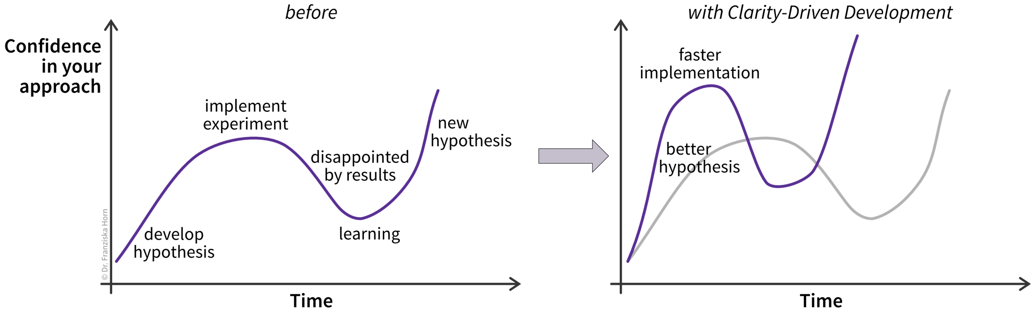 I believe that Clarity-Driven Development (CDD) will help you accelerate this cycle. It enables you to form stronger hypotheses and implement experiments more efficiently. Disappointing results will still happen—there’s no avoiding that—but with CDD, your iteration loops become shorter, and progress comes faster.